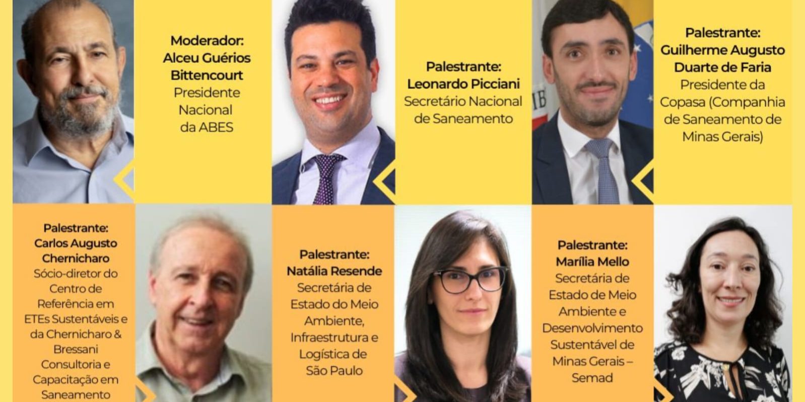 Além do secretário, estarão no debate Guilherme Augusto Duarte de Faria, presidente da Copasa (Companhia de Saneamento de Minas Gerais); Natália Resende, secretária do Meio Ambiente, Infraestrutura e Logística do Estado de São Paulo; Marília Mello, secretária de Meio Ambiente e Desenvolvimento Sustentável do Estado de Minas Gerais; e Carlos Augusto Chernicharo, sócio-diretor do Centro de Referência em ETEs Sustentáveis e da Chernicharo & Bressani Consultoria e Capacitação em Saneamento.