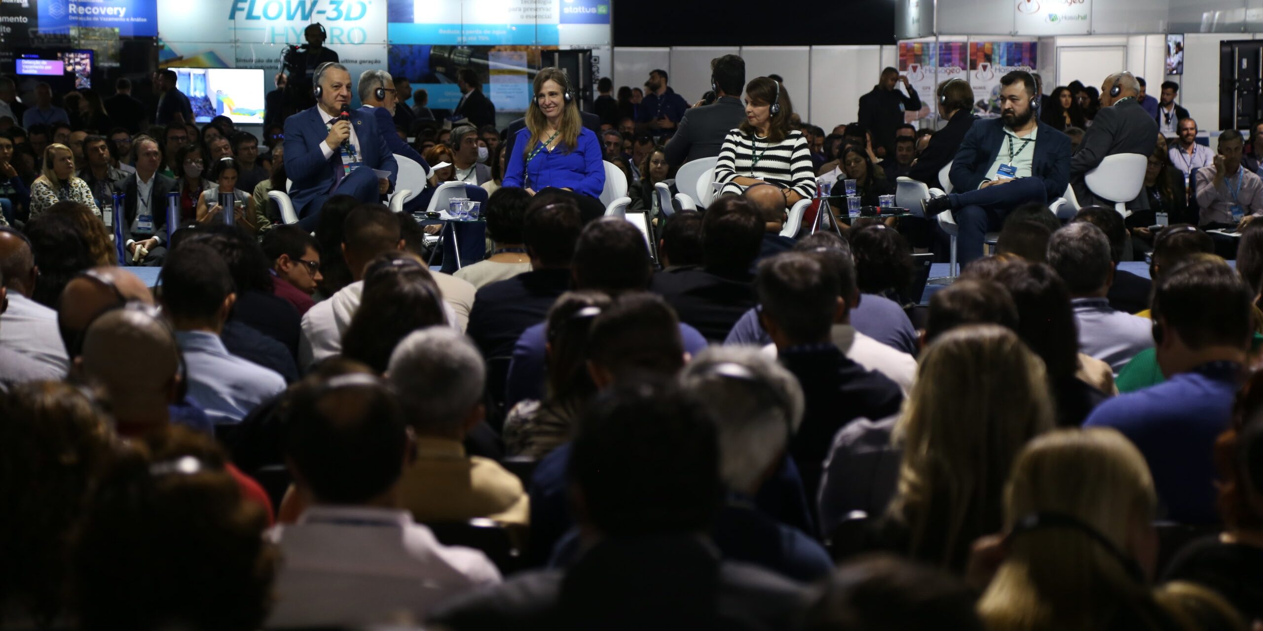 Moderado por Luiz Pladevall, presidente da ABES-SP, o painel teve participação de Cristina Zuffo, superintendente de Pesquisa, Desenvolvimento Tecnológico e Inovação da Sabesp (Companhia de Saneamento Básico do Estado de São Paulo), Ronner Gondim, superintendente de Sustentabilidade da Cagece (Companhia de Água e Esgotos do Ceará), e Márcia Fragoso Soares, diretora de Desenvolvimento Tecnológico, Meio Ambiente e Empreendimentos da Copasa (Companhia de Saneamento de Minas Gerais).